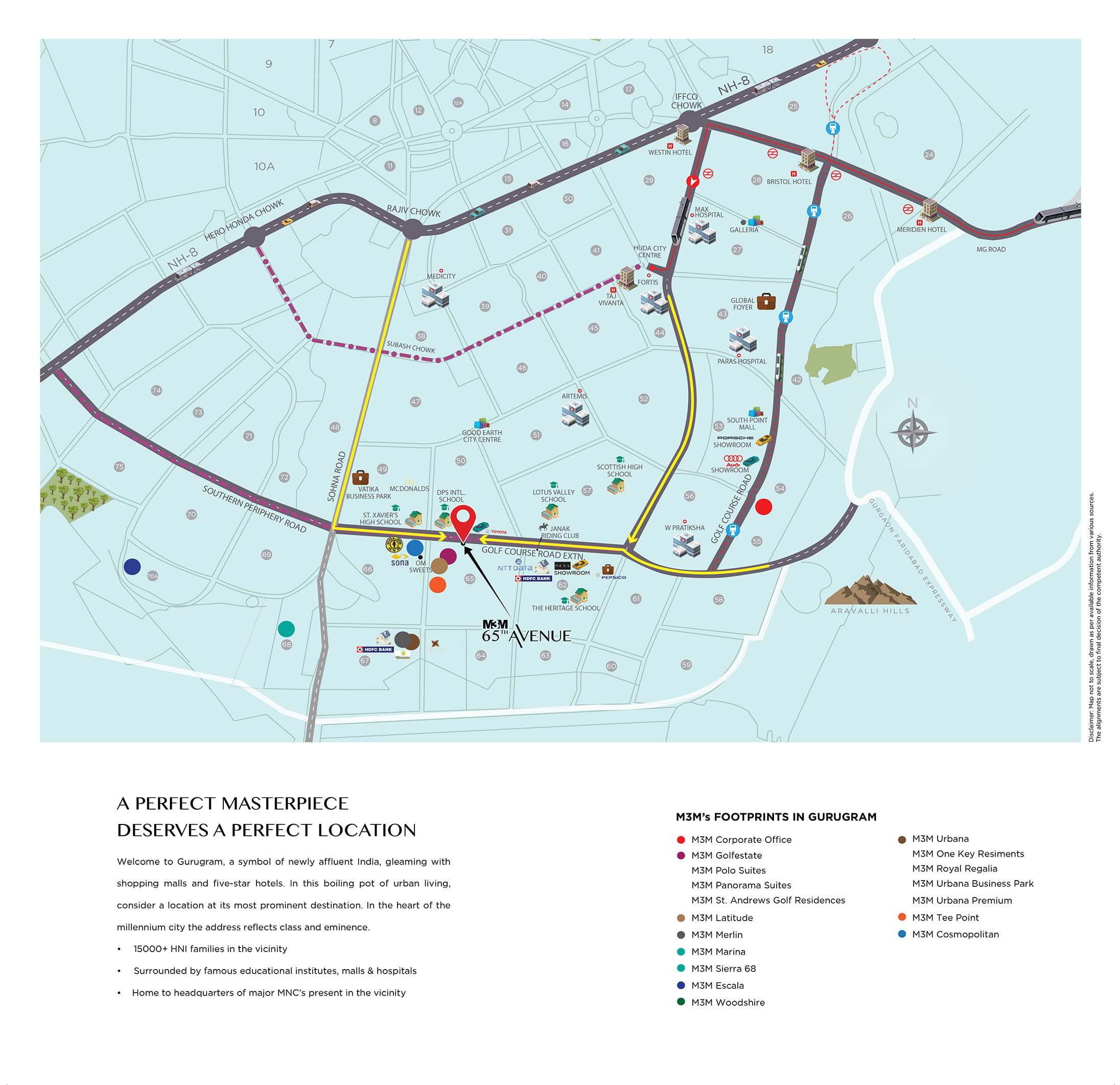 Disclaimer:- Welcome to M3M 65th Avenue (“Website”). The contents of this website are for general informational purposes only. By using or accessing this Website and/or the hyperlinks embedded/ mentioned in the Website you agree to abide by the terms and conditions, as set forth herein and as contained in the Website without any qualification or limitation. In the event you do not accept/ agree to the terms of this Disclaimer, you are requested not to use the Website or download materials from the Website. Every endeavor has been made to keep the information updated. However, we make no representations or warranties of any kind, express or implied, about the completeness, accuracy, reliability, suitability or availability with respect to the Website or the information, products, services, or related graphics contained in the Website for any purpose. The Website and all its content are provided on an “as is” and “as available” basis and is intended for informational purposes only. No information given under this Website shall be treated as a warranty or representation by us. Your use of the Website is solely at your own risk. This Website is for guidance only. It does not constitute part of an offer or contract. The contents, including design and specifications are subject to change without prior notice. Computer generated images are the artist’s impression and are an indicative of the actual designs. By using and/or accessing this Website, you, the viewer/user acknowledge that the information including any material/ documents (such as brochures and marketing collaterals) on this Website are solely for informational purposes and you have not relied on this information for making any booking/ purchase/ intention to purchase/ invest in any project(s) of M3M INNOVATION PARK and/or its affiliates. Nothing herein shall be construed as any invitation, or offer for investment or deposit within the terms of the applicable law (as amended from time to time) including without limitation SEBI Act, 1992, Companies Act 2013 etc. and we shall not be liable for any consequence of any action taken by the viewer relying on such material/ information on this Website. The particulars contained on the Website mention details of Projects/ developments undertaken by M3M INNOVATION PARK and/or its affiliates. The contents are being modified in terms of the stipulations/ recommendations under the Real Estate Regulation Act, 2016 and Rules made thereunder (“RERA”) and accordingly may not be fully in line thereof as of date. Use of information shall be governed by Indian laws, RERA; subject to jurisdiction of Competent Authority under RERA, courts at Gurugram/ Haryana India. You are further advised to verify all the details, including area, amenities, services, terms of sales and payments and other relevant terms independently with the sales team independently, subject to prior appointment during working hours and speak to one of our sales staff, prior to concluding any decision for buying any unit(s) in the said project. In no event shall M3M INNOVATION PARK, its affiliates, employees, directors and/or officers be made liable for any claim as a result of any inaccuracies in the information provided in this Website, though all efforts have to be made to ensure accuracy and under no circumstances shall we be liable for any expense, loss or damage including, without limitation, indirect or consequential loss or damage, or any expense, whatsoever arising from use, or loss of use, of data, arising out of or in connection with the use of this Website.